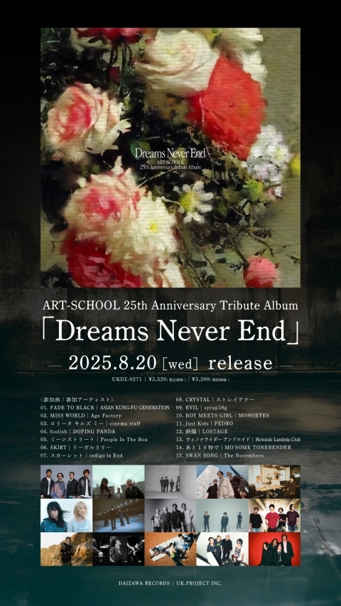 8/20 (水) に発売されるART-SCHOOL結成25周年記念トリビュートアルバム『Dreams Never End』に